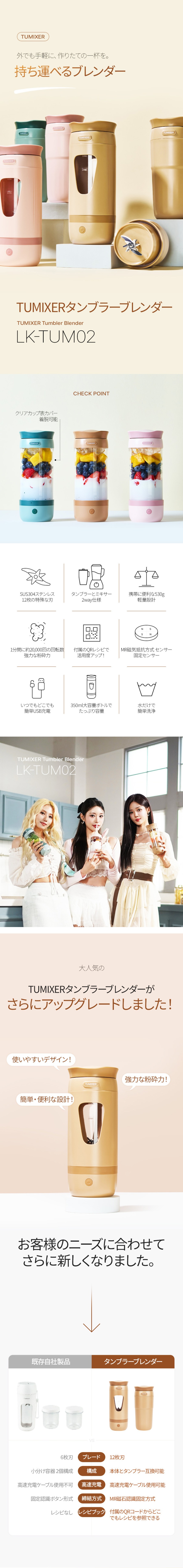 ただのミキサーではありません。「時間がない」「ヘルシーなものが食べたい」「子どもの離乳食に」—— そんな"よくある悩み"を、【TUMIXER】がまるごと解決します。あなたのライフスタイルに、もっと自由と美味しさを。手軽・おしゃれ・本格的。これからのミキサーは、「持ち運ぶ」時代へ。