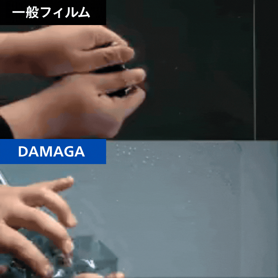 DAMAGAなしの瓶より付着した瓶の方が水滴が小さく流れにくいことが分かりました。